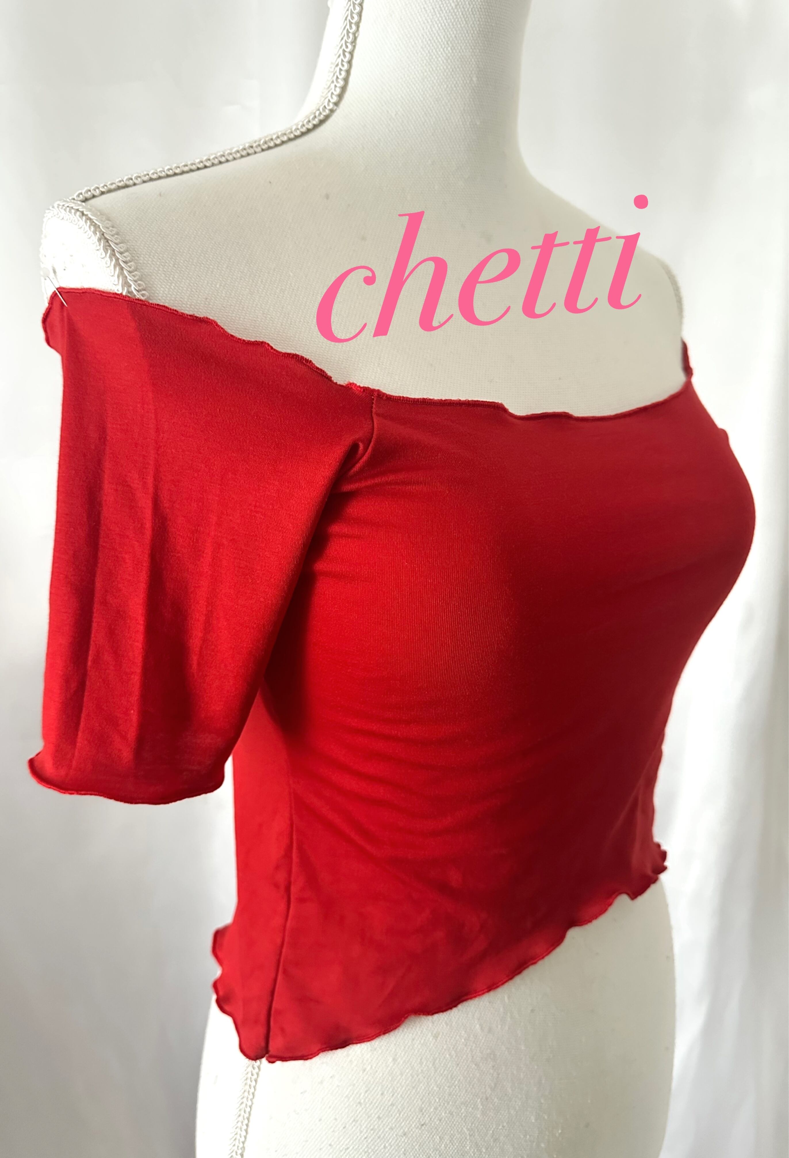 ダンスウェア 赤オフショルトップス 女性らしいデザイン