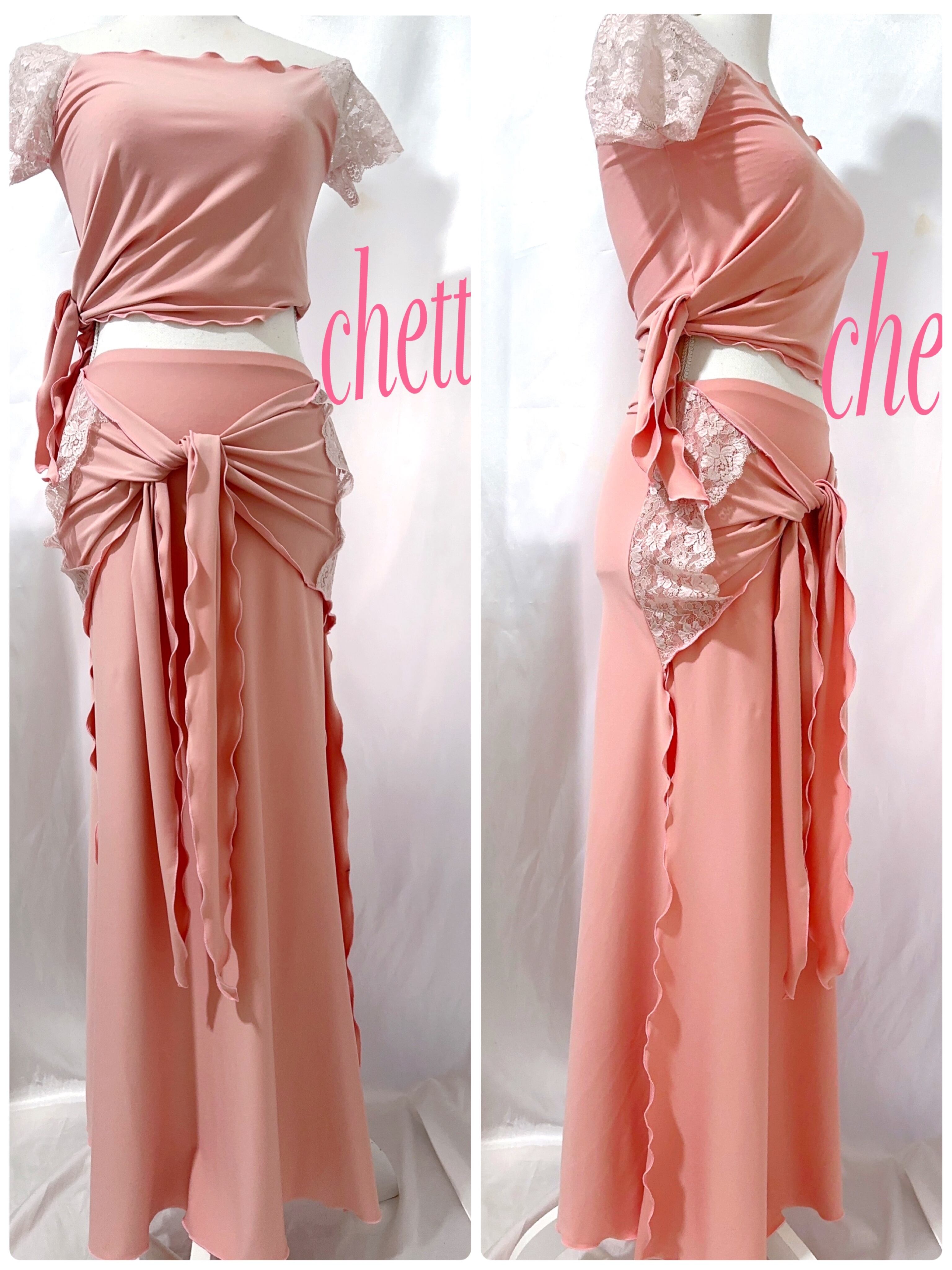 桜ピンク✖️薄ピンクレース✖️オフショル✨ベリーダンス✨セットアップアッ