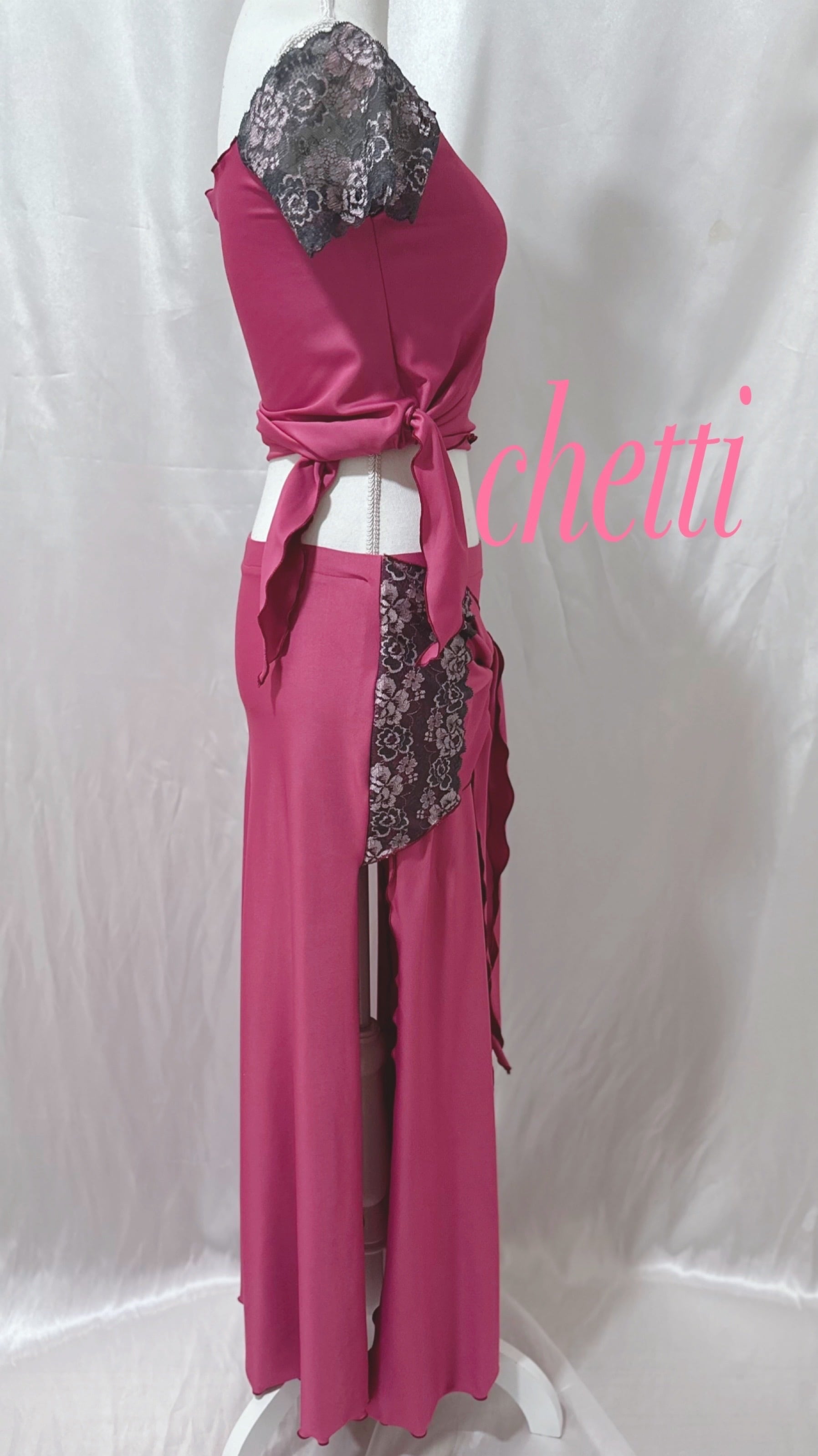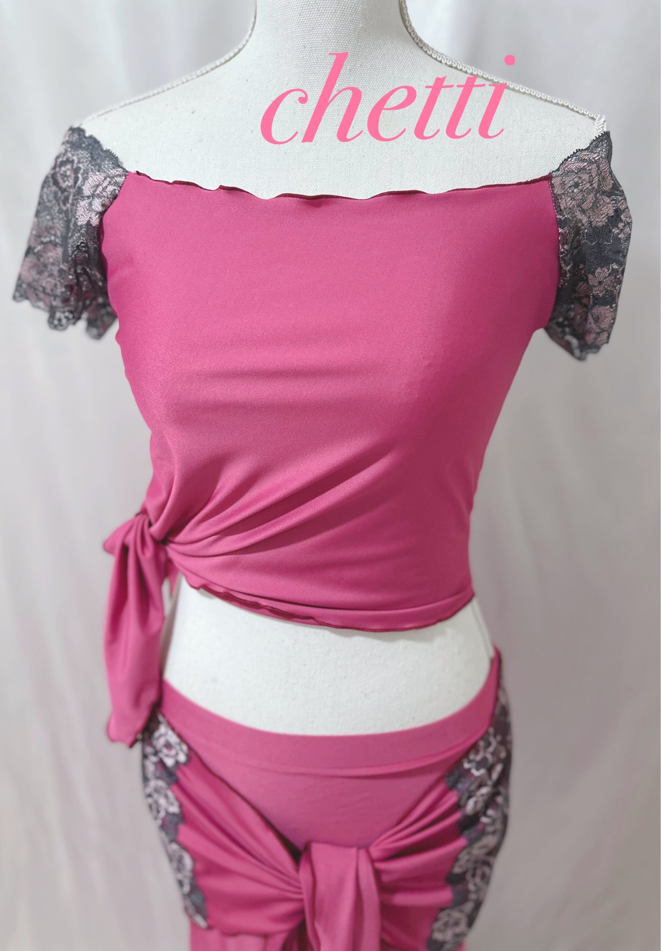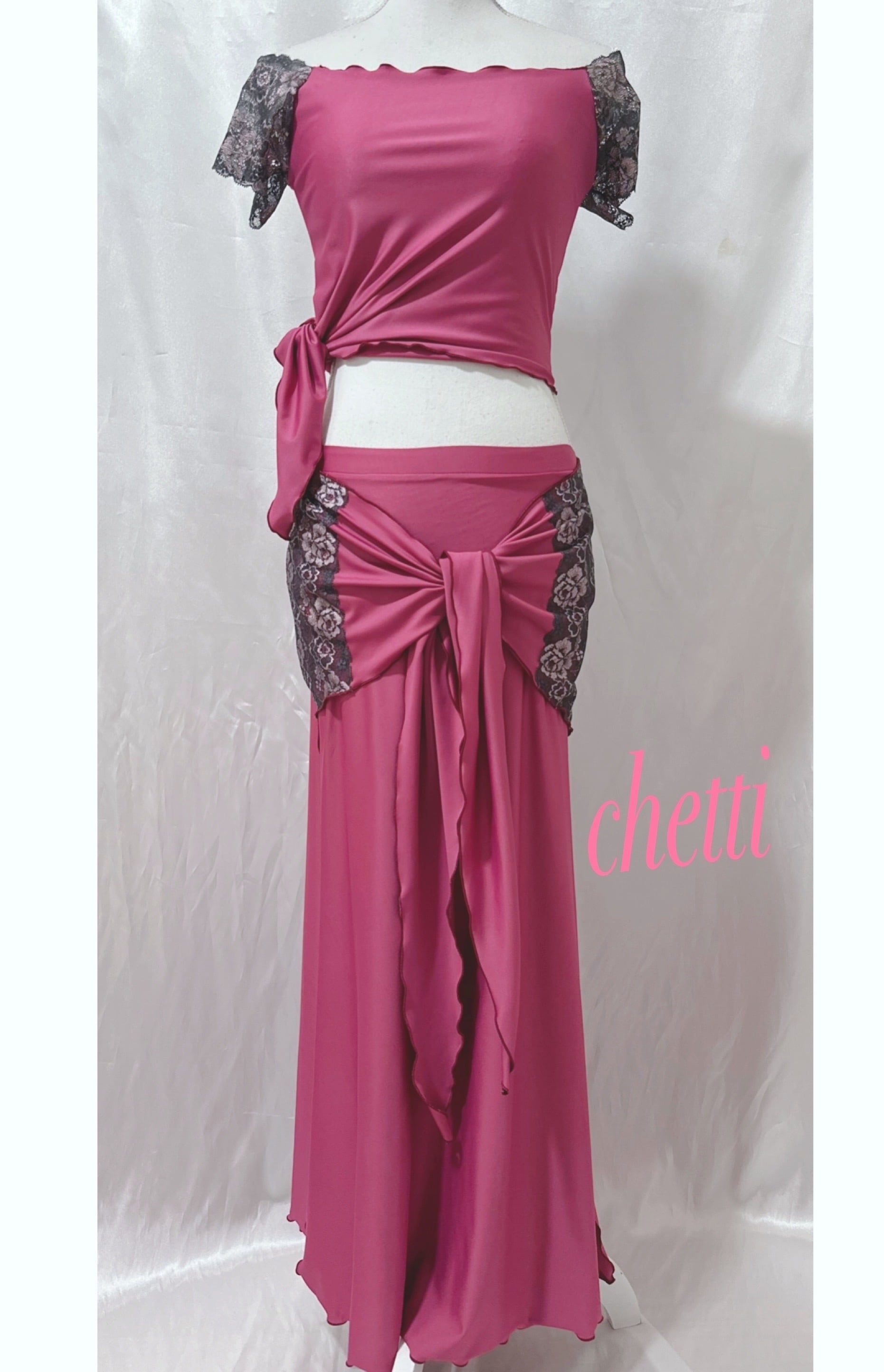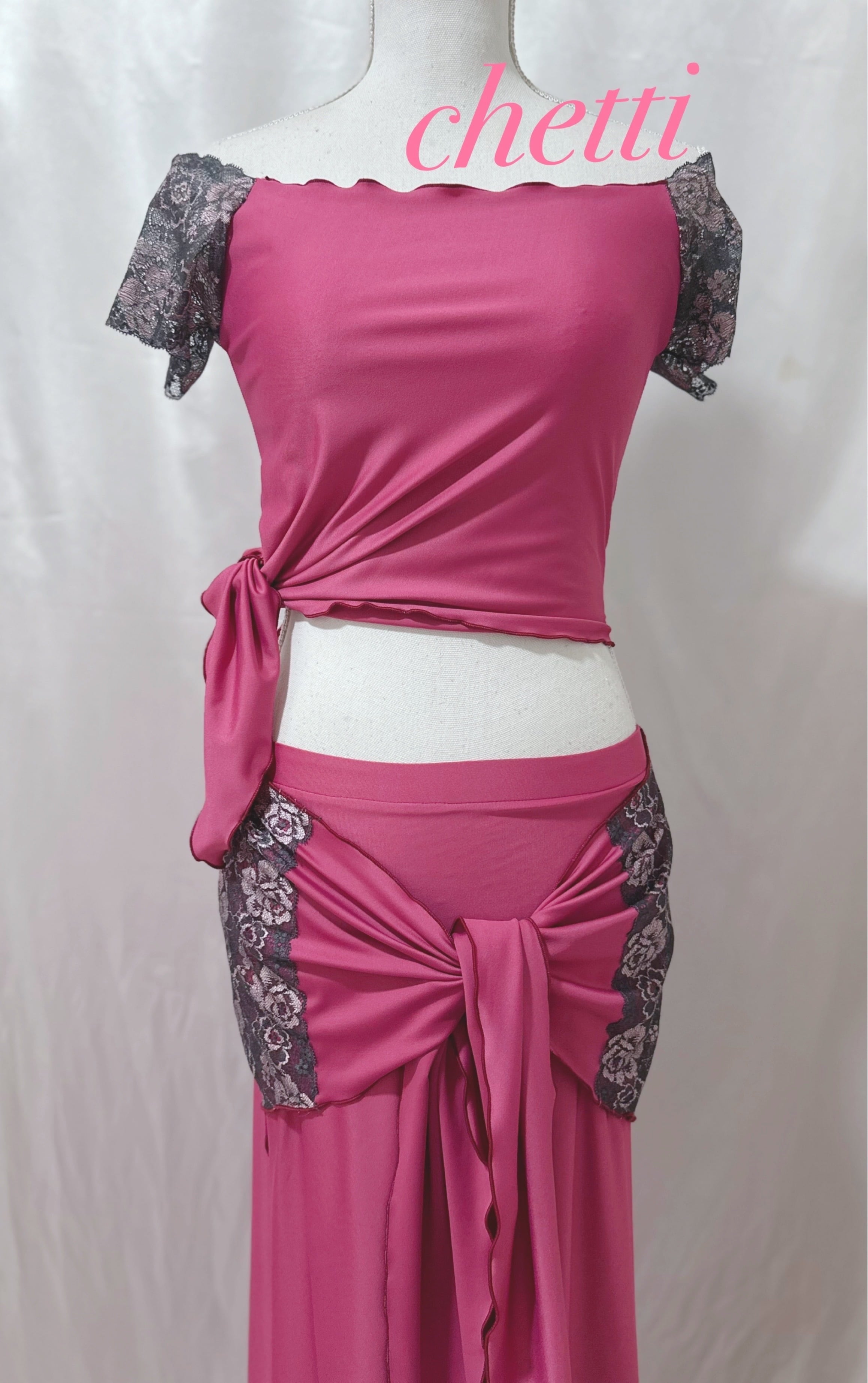 ピンク紫✖️グレーレース✨ベリーダンス✨オフショル✨セットアップ | chetti ☆ベリーダンス ☆オリエンタル ☆レッスン ☆舞台