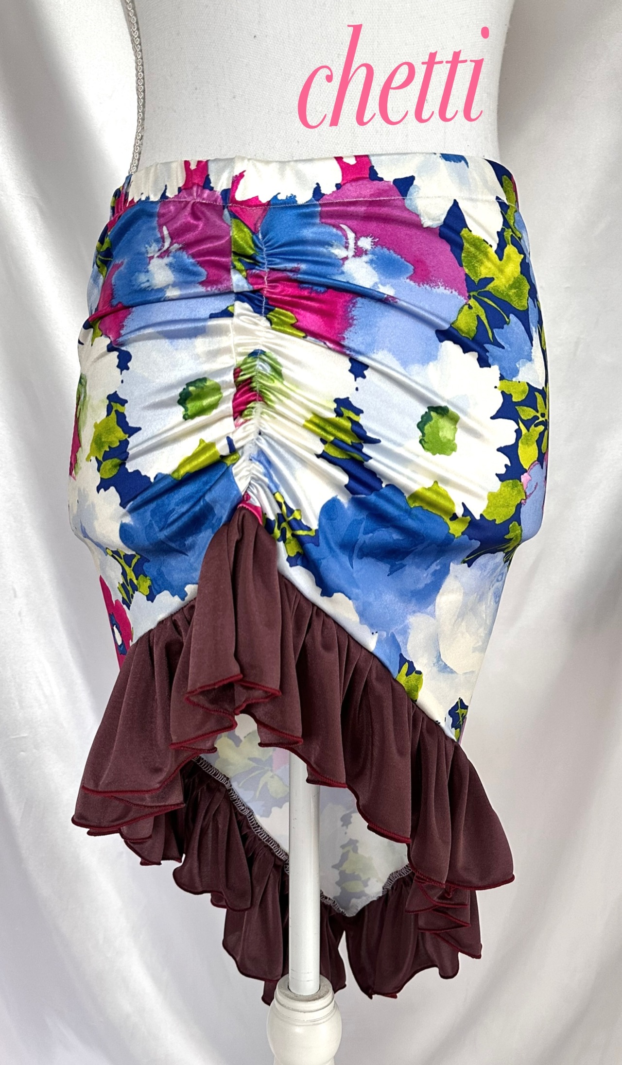 華やかな花柄×大人カラー茶色フリルのスカート✨