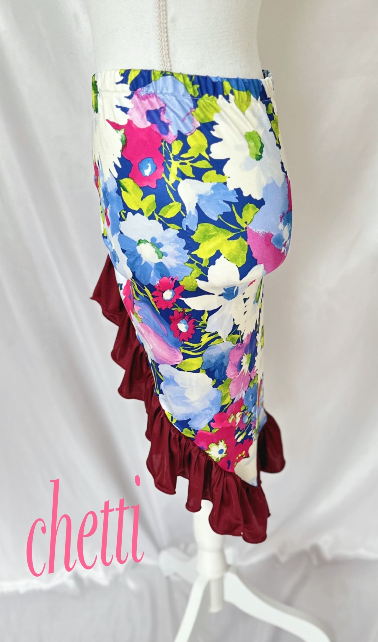 華やかな花柄×ワインレッドフリルのスカート✨