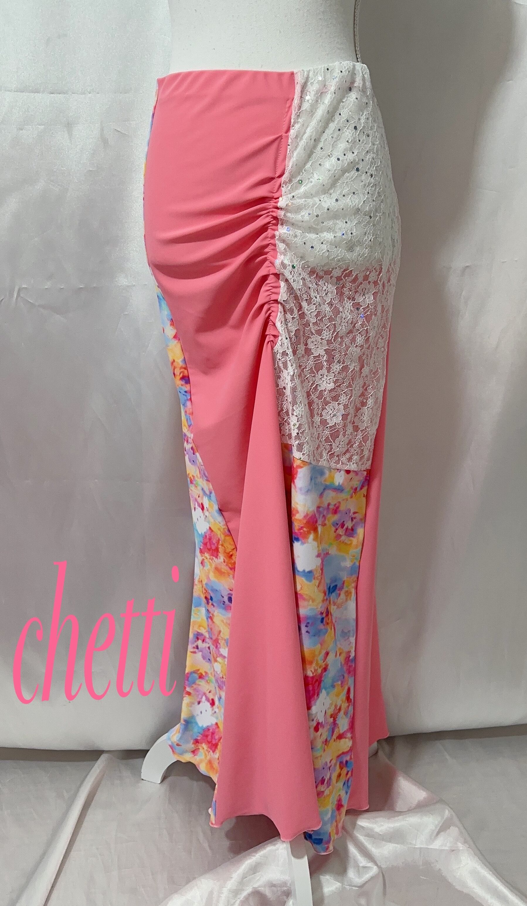 ピンク✖️タイダイ柄✖️レース✨スカート✨ベリーダンス✨G-71