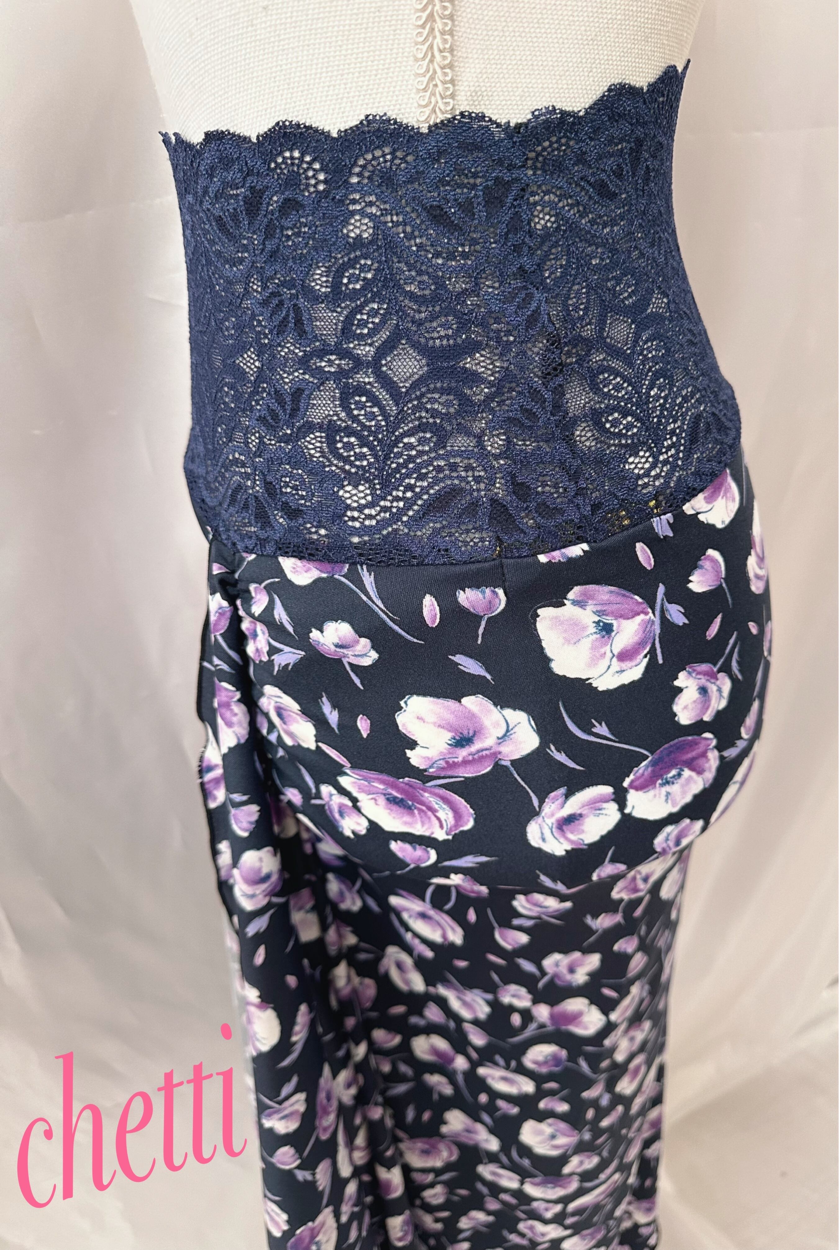 人気定番の形✨マルチスカート花柄紫✨レースハイウエスト✨自宅からレッスンにそのまま行ける✨