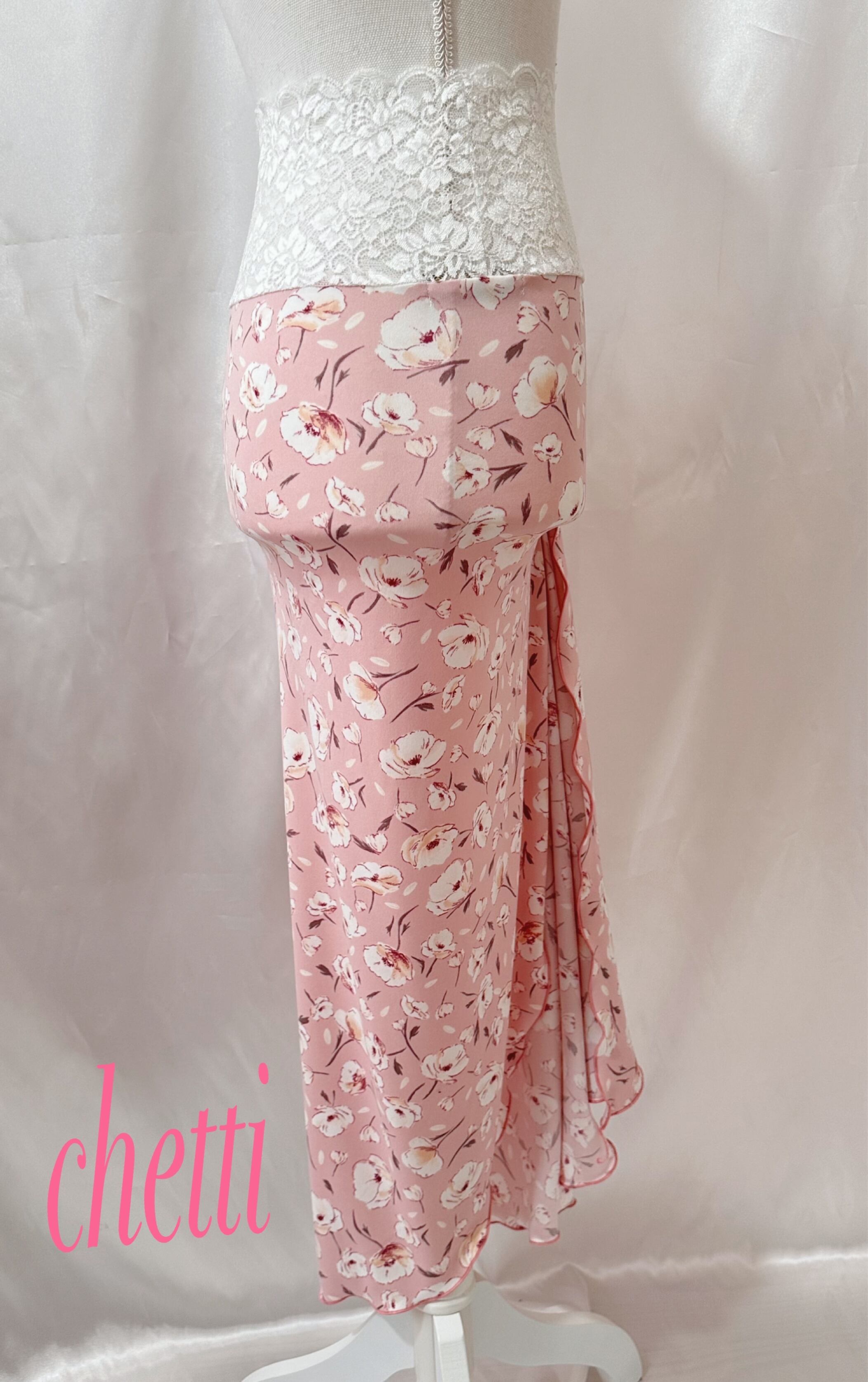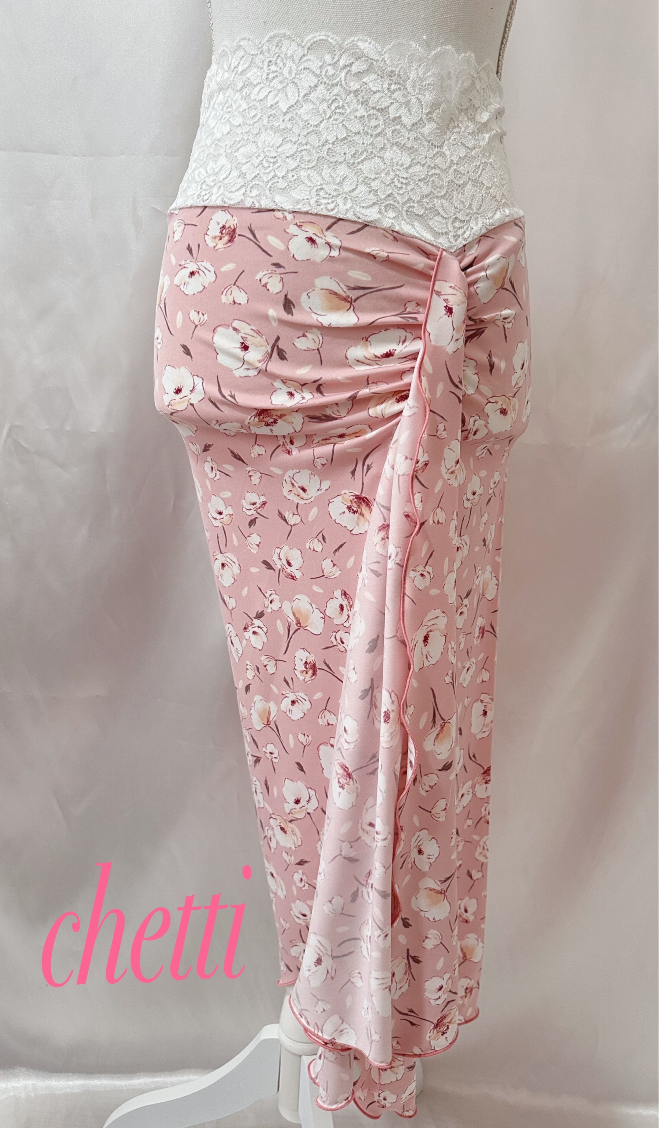 人気定番の形✨マルチスカート花柄ピンク✨レースハイウエスト自宅からレッスンにそのまま行ける✨