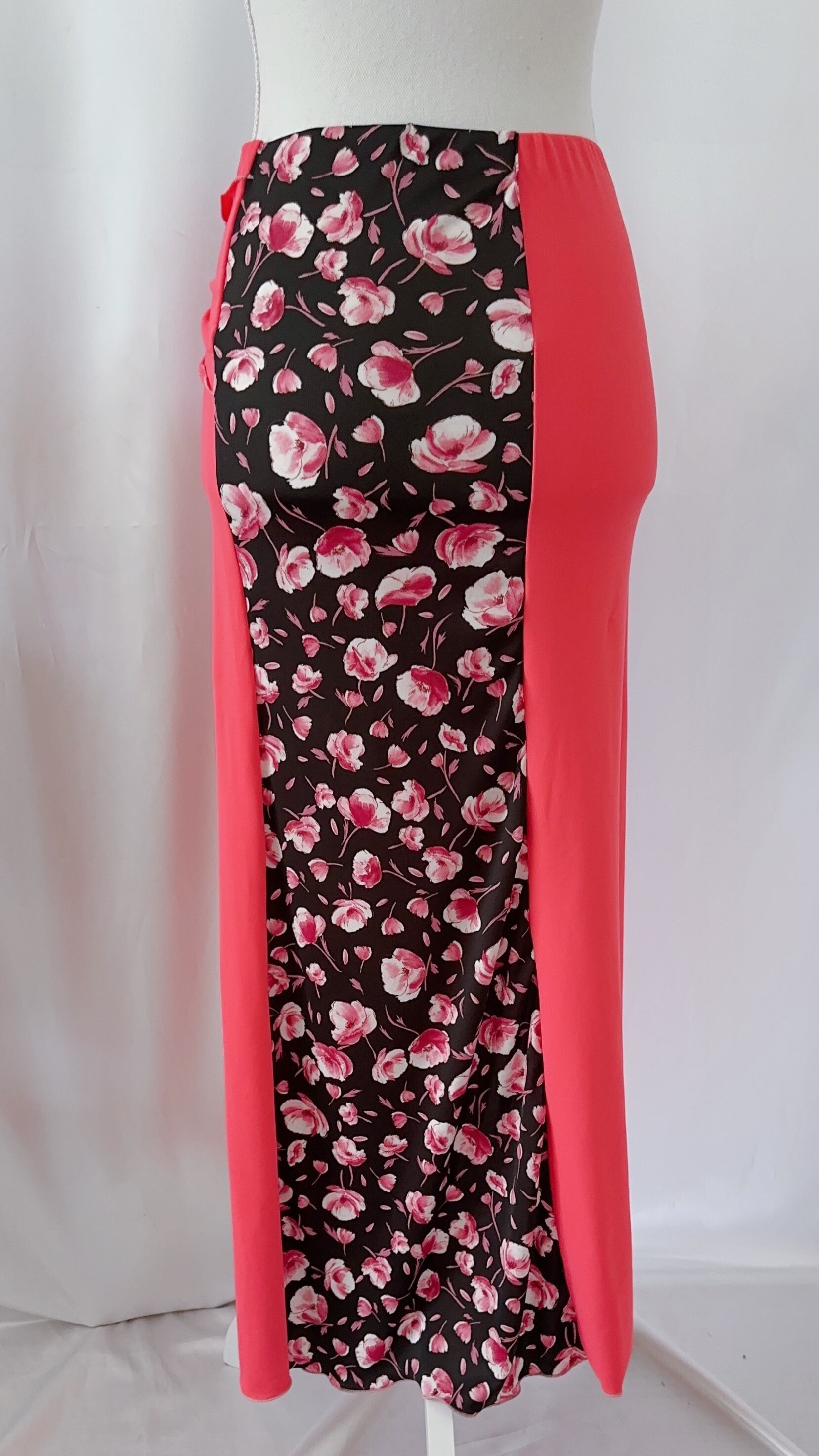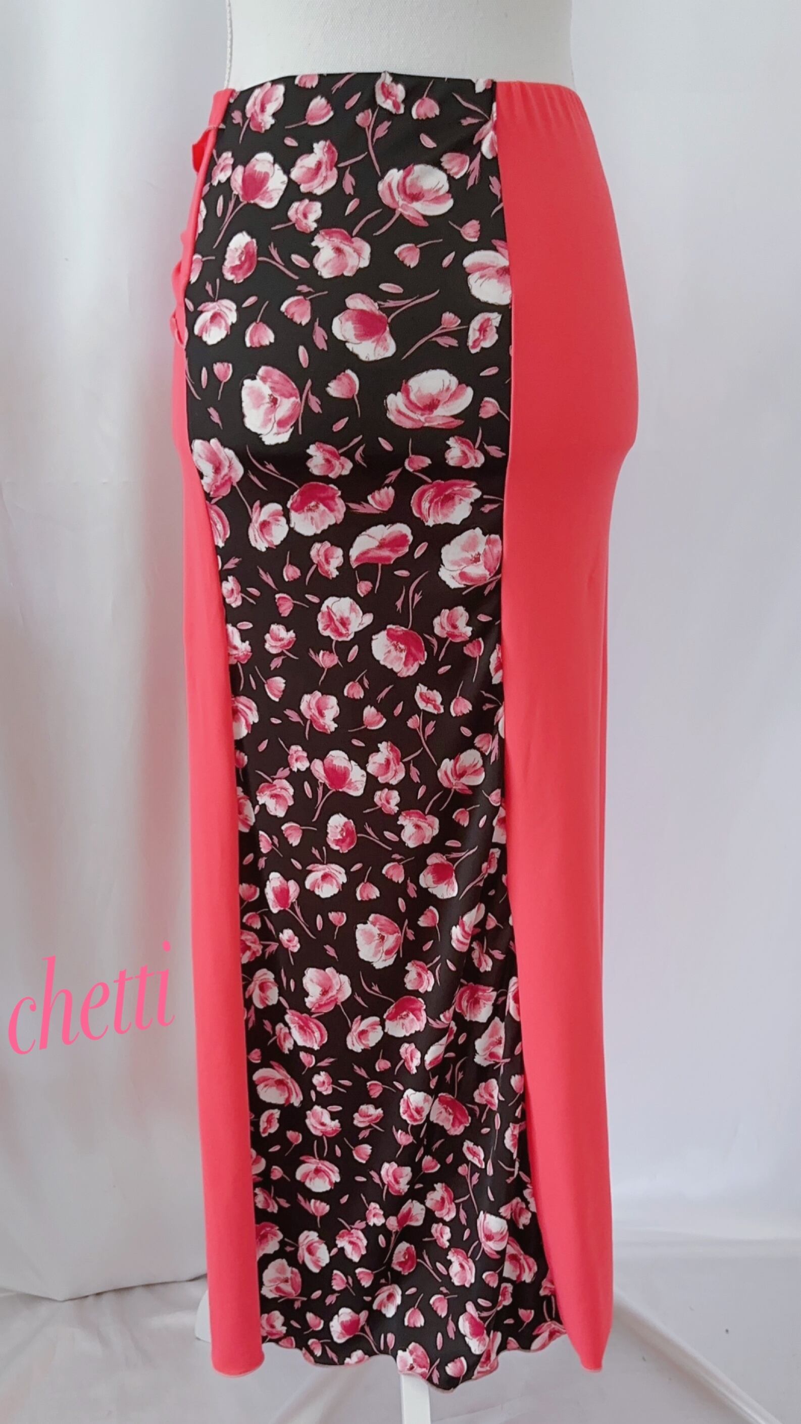 ロングスカート✨赤の花柄✖️コーラルピンク✨ベリーダンス✨G-72