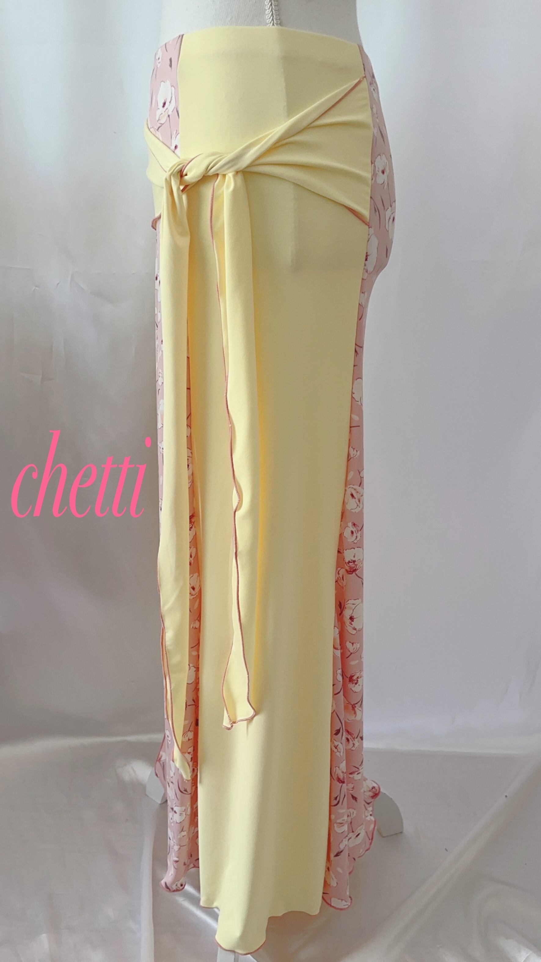ロングスカート✨白の花柄✖️レモンイエロー✨ベリーダンス✨G-73