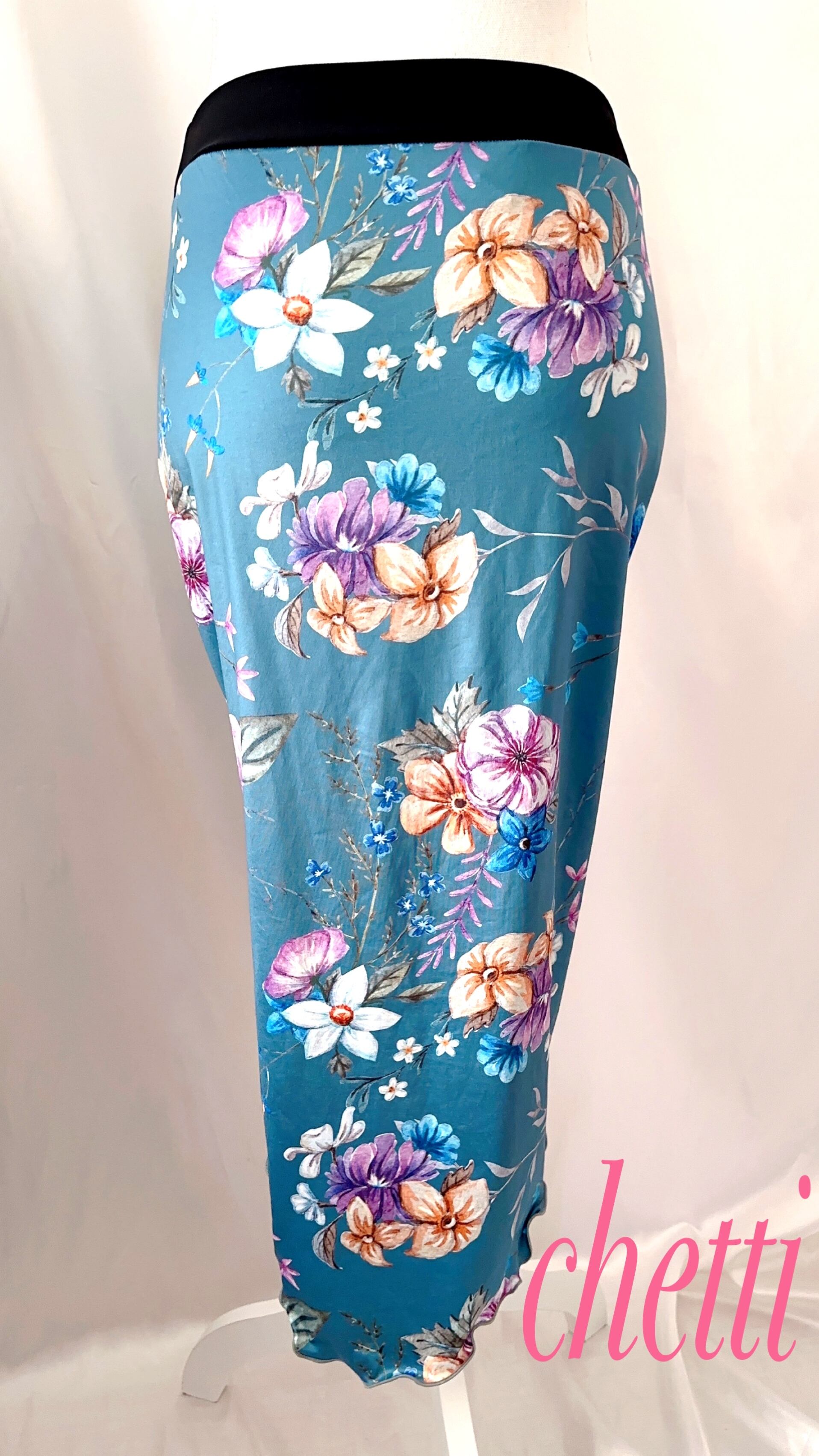 爽やかブルー花柄スカート✨ベリーダンス✨レッスンスカート✨ウエストレース